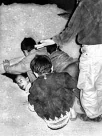 corren a un refugio subterráneo en Kabul durante los bombardeos