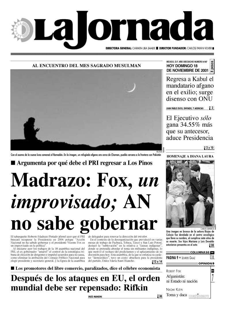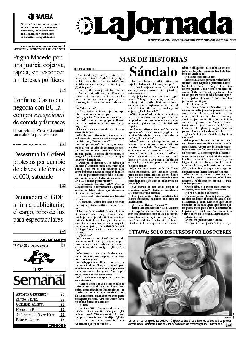 La Jornada, Coordinación de Sistemas Francisco Petrarca 118, Col. Chapultepec Morales, delegación Miguel Hidalgo México D.F. C.P. 11570 Teléfono (525) 262-43-00, FAX (525) 262-43-56 y 262-43-54
