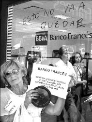 la puerta del Banco Provincia, y haciendo sonar cacerolas también