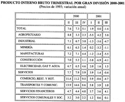 crecimiento de 1.1 por ciento en 2001 respecto a 2000.