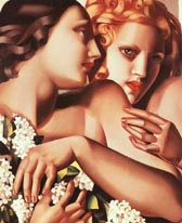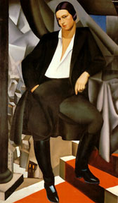 Ante la indolencia de su marido para trabajar, Tamara decidió probar suerte en la pintura con la intención de poder mantener a su familia con la venta de sus cuadros. Con esa idea ingresó en lAcadémie Ranson donde recibió clases de pintura con Maurice Denis, quien le enseñó las distintas técnicas pictóricas y los secretos de la composición. Pero fueron sobre todo las enseñanzas del polifacético artista André Lhote las que influyeron en Lempicka, dándole ese estilo tan personal a medio camino entre el clasicismo académico y el cubismo que tanta fama le reportó. Lhote fue el creador del neocubismo: una tendencia estilística que hacía una reinterpretación sintética y sumamente formalista del cubismo alumbrado por Picasso, Gris y Braque. En cierto modo, lo que hizo Lhote fue domesticar y edulcorar el cubismo original para adaptarlo al gusto y sensibilidad de la burguesía dominante. Lempicka quizá consciente de que había un mercado artístico por explotar se adhirió en seguida al estilo híbrido de su maestro y en esa línea empezó a pintar naturalezas muertas y retratos de su hija. Sus cuadros gustaban y, lo más importante, se vendían bien. Esto hizo que pronto las galerías y salones más importantes de París se disputaran sus obras. En 1925, tuvo lugar en la capital francesa la Exposition Internationale des Arts Décoratifs et Industriels Modernes. Aquel evento oficializó el apogeo del estilo art déco y el triunfo de la pintura sintética y amanerada de artistas como Lhote, Lempicka o Valmier. También fue a mediados de los años veinte y por recomendación de su maestro que descubrió la obra de un pintor que tendría una influencia decisiva en su obra: Jean Auguste Ingres. Las grandes pinturas del gran clasicista romántico fueron una fuente directa de estudio e inspiración. Así, las suaves carnaciones de los desnudos, el modelado de los cuerpos a partir de la luz y las atrevidas composiciones de grupos de figuras presentes en muchos cuadros de aquella época, como Grupo de cuatro desnudos femeninos (1925), Andrómeda (1927) o Mujeres bañándose (1929) son herencia directa de la pintura de Ingres. La década de los treinta sirvió para encumbrar más aún su obra. Dos hechos extraartísticos contribuyeron sin duda a ello: la depresión económica de los años treinta y el advenimiento del nazismo. Con el crack del 29 el sueño que para muchos fueron los felices años veinte acabó en pesadilla. El desempleo y el hambre azotaron a Estados Unidos y Europa, y los cimientos de la sociedad occidental parecieron derrumbarse irremediablemente. Aquella crisis económica también tuvo consecuencias en el terreno artístico: desde distintos frentes se cuestionó el papel revolucionario y redentor de muchos de los movimientos de vanguardia y se impuso un rebours à lordre del que no escapó ni el propio Picasso. Las miradas de los artistas, como si quisieran huir de la miseria y el desasosiego reinantes, se refugiaron en la belleza perenne del mundo grecorromano y en la perfección de los grandes maestros del Renacimiento. El lenguaje de Lempicka, sin que ella lo hubiera buscado, se adaptaba a la perfección a los nuevos criterios estéticos. El cuerpo poderoso de las figuras y el acentuado perfil de los rostros de su Adán y Eva (1932) son un claro exponente de ese gusto por lo clásico.
