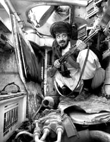 El Pentágono confirmó que nueve de sus soldados murieron tras la caída de la nave cerca de Gardes. Un segundo aparato también fue atacado pero pudo escapar. En la imagen, un combatiente afgano pro estadunidense toma posición en un tanque durante una ofensiva en Zurmat, cerca de las montañas Ama, donde se cree que se concentran las fuerzas de Osama Bin Laden FOTO AFP