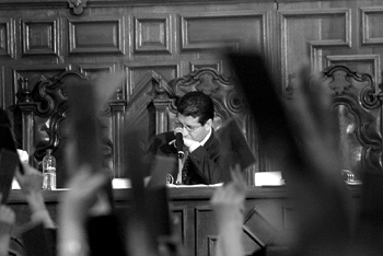 Guerrero durante la sesión extraordinaria en el salón