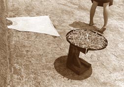 Entre las fotos que me encantan están Un poco alegre y graciosa (1942) y El umbral (1947), que me marcan la sencillez y la expresión corporal. No me hace falta ver nada más. A partir de estas dos fotos he realizado un trabajo en el ámbito etnográfico, rural y urbano; es algo que me educó y que posteriormente incide en mi trabajo de desnudo. Una expresión del cuerpo sin que sea el rostro. De él hay un trabajo que no se ha estudiado mucho y es el color. Entre mis tesoros emotivos está una foto que era de Alice Rahon y es de una cabeza de pollo realizada por don Manuel, prueba de autor; foto que no he visto registrada ni estudiada.