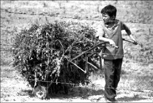 Un niño trabaja en la recolección de alfalfa en Tlaxcala FOTO PEDRO PARDO
