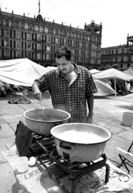 Maestros de la coordinadora mantienen su plantón en el Zócalo en demanda de entablar pláticas con el titular de la Secretaría de Educación sobre presupuesto y programas educativos. El funcionario exhortó a los profesores a retornar a sus lugares de origen, pues las negociaciones salariales ``es algo ya concluido'' FOTO MARIA LUISA SEVERIANO