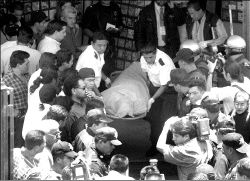 Puebla, Pue., 27 de mayo. Este lunes, durante una manifestación que realizaban trabajadores de la empresa Transportadora de Valores Tameme, ocurrió un enfrentamiento a las puertas de la Junta Local de Conciliación y Arbitraje (JLCA), aparentemente entre efectivos de la Policía Judicial del Estado (PJE) y supuestos esquiroles de la citada compañía.