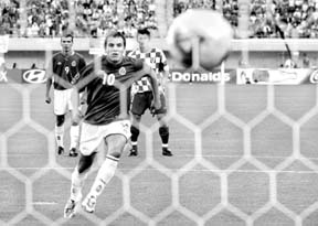 Cuauhtémoc Blanco hace efectivo el penal del triunfo en el minuto 60, en el estadio Gran Cisne de Niigata FOTO REUTER