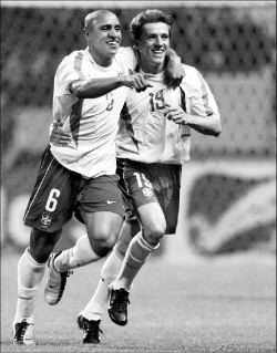 Ronaldinho (Denilson 46), Roberto Carlos - Rivaldo, Ronaldo (Edilson 72).