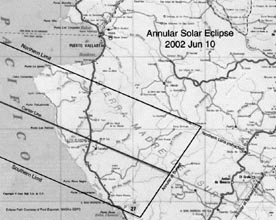 Roca Negra, en el estado de Jalisco. Fuera de ese límite, el eclipse