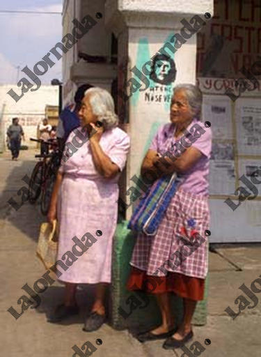 Campesinas se reunen en la Plaza principal de San Salvador Atenco, el 14 de junio de 2002.LA JORNADA/ Maria Luisa Severiano