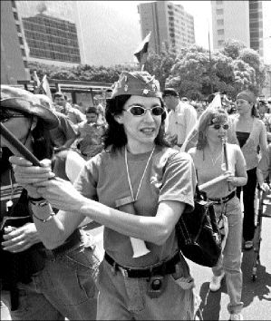 Muchos de los chavistas lucían boinas rojas y lanzaban