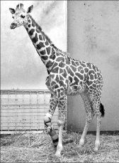 A Taiyo, la jirafa de 10 meses, se le puso una pata artificial