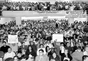 En asamblea general, los sindicalistas acordaron un plan de acción para enfrentar la propuesta gubernamental de cambios constitucionales que permiten la apertura al capital empresarial. En San Miguel Allende, en reunión privada con varios secretarios de Estado, la bancada panista en el Senado resolvió hacer suya la reforma foxista y buscar que sea aprobada en el próximo periodo de sesiones FOTO CARLOS RAMOS MAMAHUA