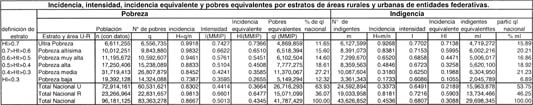 es de 94.6 por ciento y la de la indigencia de 65 por ciento. Como se aprecia,