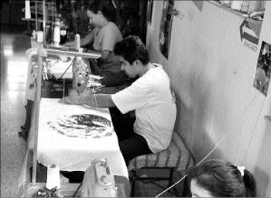 elaboran banderas en su taller, en la colonia Granjas