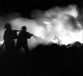 Bomberos apagan las llamas de un depósito de llantas usadas que estaban guardadas en un local de 60 por 60 metros en la colonia Villa de la Esperanza. En la conflagración no hubo víctimas FOTO J. GUADALUPE PEREZ