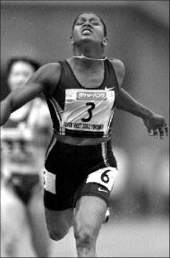 Susanthika Jayasinghe, de Sri Lanka, cruza la meta en la prueba de los 200 metros libres. La atleta obtuvo el oro con 22:91 segundos FOTO REUTERS