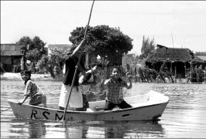 en Hecelchakán, donde sólo sobresalen del agua los techos