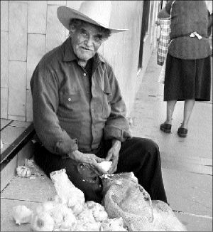 Vendedor de ajos en el centro de Tijuana FOTO LUZ SERRANO/MX.FOTO/TIJUANA