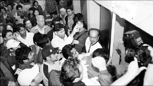 El retardo de los trabajos del consejo obedeció también a que muchos de los consejeros de distintos puntos del país no pudieron llegar a tiempo debido el cierre matutino del aeropuerto, por un denso banco de niebla que afectó las operaciones de ayer. Mientras se esperaba la llegada de los consejeros, un grupo de perredistas veracruzanos irrumpió en el salón en el que se encontraban Robles Berlanga y algunos miembros del comité ejecutivo.