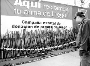Más de 3 mil 200 armas han sido recibidas en 33 dís que lleva la campaña de donación de armas de fuego en Baja California, lo que ha atraído la atención de curiosos que pasan por la zona donde el arsenal es exhibido FOTO LUZ SERRANO