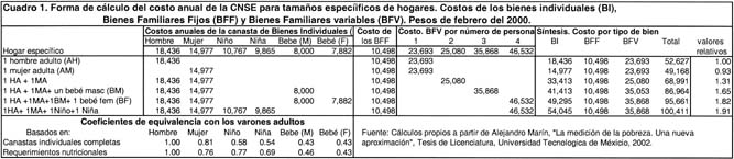 y estructura por edades y sexos del hogar, a partir de la CNSE. El costo