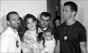 Ya entrada la noche, Gloria Trevi, junto con dos policías