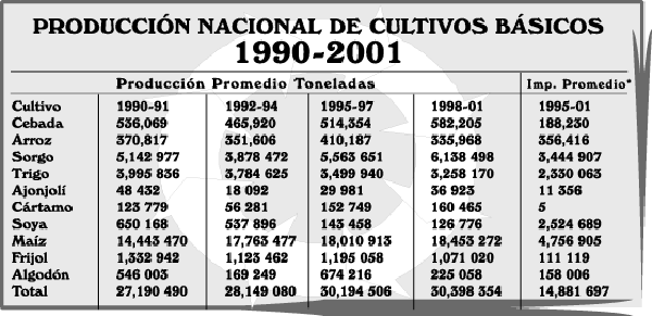 de 1.83 por ciento en el periodo 1995-2001, pero las 30.3 millones de toneladas