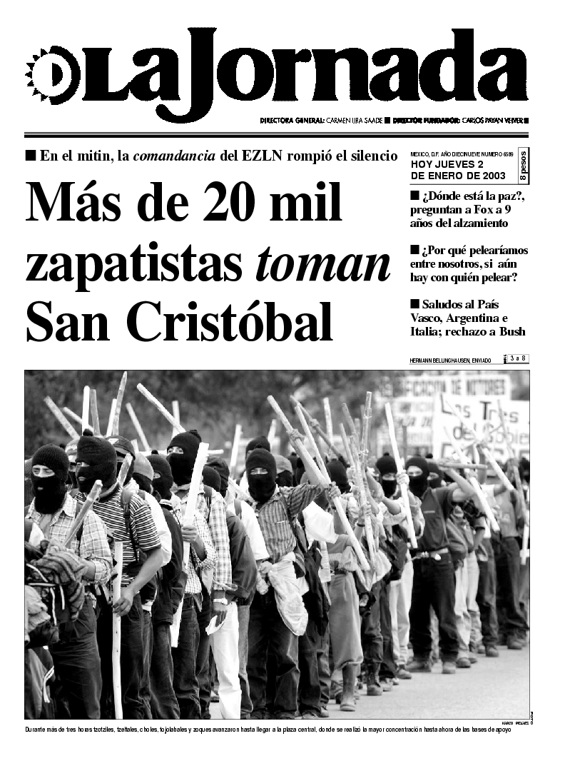 Durante más de tres horas tzotziles, tzeltales, choles, tojolabales y zoques avanzaron hasta llegar a la plaza central, donde se realizó la mayor concentración hasta ahora de las bases de apoyo FOTO MARCO PELAEZ