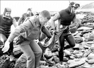 saliendo del petrolero hundido Prestige, por lo que las labores