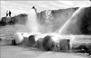 ACCIDENTE EN HIDALGO  La explosión de un tanque con 5 mil litros de gas y el incendio de otros cuatro arrasaron una fábrica de mezclilla en Chicavasco, municipio de Actopan. Un obrero de la planta resultó intoxicado FOTO ARMANDO LOAIZA