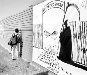 de los migrantes en Tijuana y San Diego colocaron este viernes en la barda