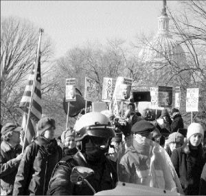 Veteranos de guerra, madres con sus hijos, un grupo que se identificó como "las abuelitas furiosas", creyentes musulmanes y judíos, integrantes de varias iglesias protestantes y miles de jóvenes se congregaron frente al Capitolio para expresar su repudio a la anunciada guerra contra Irak.