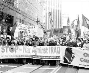 Objetando a Bush sus "palabras de engaño masivo", las pancartas de los manifestantes ofrecieron un mapa de la diversidad de este movimiento, caracterizado por un participante como "de paz preventiva", donde sindicalistas, am-bientalistas, organizaciones de derechos humanos, grupos comunitarios, de solidaridad, de universidades y tantos más se unieron por las demandas históricas de paz y justicia social.