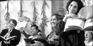 presentadores y actores y un Laughlin-fraile que ahora portaba unas extrañas