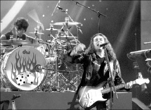 baterista, Alex González, quien tocaba de pie o dejaba caer las