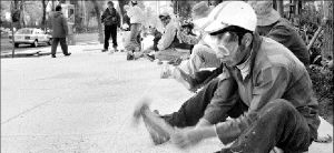 Trabajos de remozamiento en las banquetas FOTO MARIA LUISA SEVERIANO