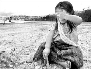 Una niña chiapaneca juega a cubrirse los ojos ante el paisaje de las lagunas de Montebello FOTO JAZMIN ORTEGA
