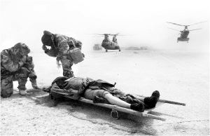 del helicóptero que los sacará de la zona de combate FOTO