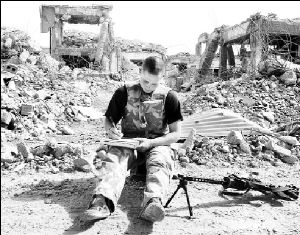 Un soldado británico toma un descanso y realiza un dibujo de las ruinas de Basora FOTO AFP
