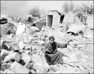 Un campesino en su granja en Janabiye, a 10 kilómetros de Bagdad, destruida por los bombardeos FOTO AFP