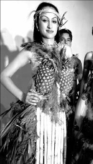 Una modelo muestra diseños hechos con vegetales y frutas durante un desfile en Nueva Delhi. La pasarela fue organizada por un grupo de promotores que defienden los derechos de los animales y defienden el vegetarianismo FOTO REUTERS