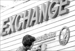 Cambio del logotipo en el más grande banco de Tailandia, el Kasikornbank, en Bagkok, con lo que espera atraer más clientes FOTO AFP