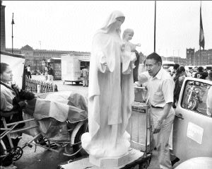 artículos religiosos trasladan una imagen a un costado de