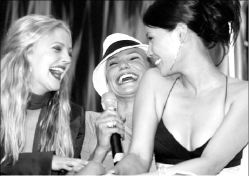 Claro que no sólo estuvo Cameron Diaz, también en la charla participaron los otros dos ángeles mundanos que conforma la cinemática trinidad de Los Angeles de Charlie: Drew Barrymore y Lucy Liu, quienes de excelente humor subyugaron a propios y extraños con su inteligencia, pero sobre todo, y únicamente para ser más exactos, con su belleza.