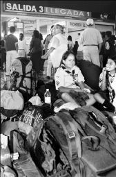 BIEN PASEADAS  Niñas esperan a sus padres, ayer en la terminal de autobuses del sur, en Tasqueña FOTO JULIO REYNA QUIROZ