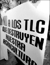 Productores agrícolas de países centroamericanos protestaron en San Salvador contra el TLC con Estados Unidos y demandan que se suspendan las negociaciones para que puedan participar FOTO AFP
