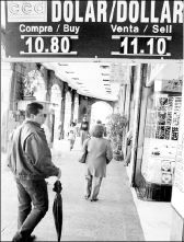 DOLAR CARO  Ayer el mercado de cambios se mantuvo ligeramente demandado, por lo que el precio del dólar llegó hasta 11.13 pesos a la venta, dos centavos más caro que el viernes anterior FOTO MARIA LUISA SEVERIANO