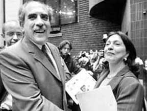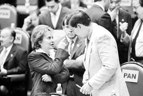 Acercamientos de la priísta Elba Esther Gordillo y el panista Francisco Barrio al abrir las sesiones en la Cámara de Diputados. Abajo, los perredistas Pablo Gómez y Amalia García FOTOS MARIA LUISA SEVERIANO